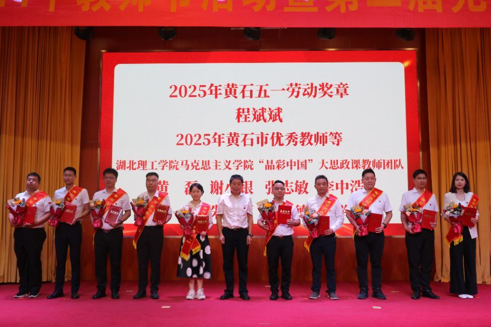 党委书记张方胜为776net必赢官网2025年黄石五一劳动奖章获得者和市级优秀教师程斌斌、黄磊等10人颁奖。
